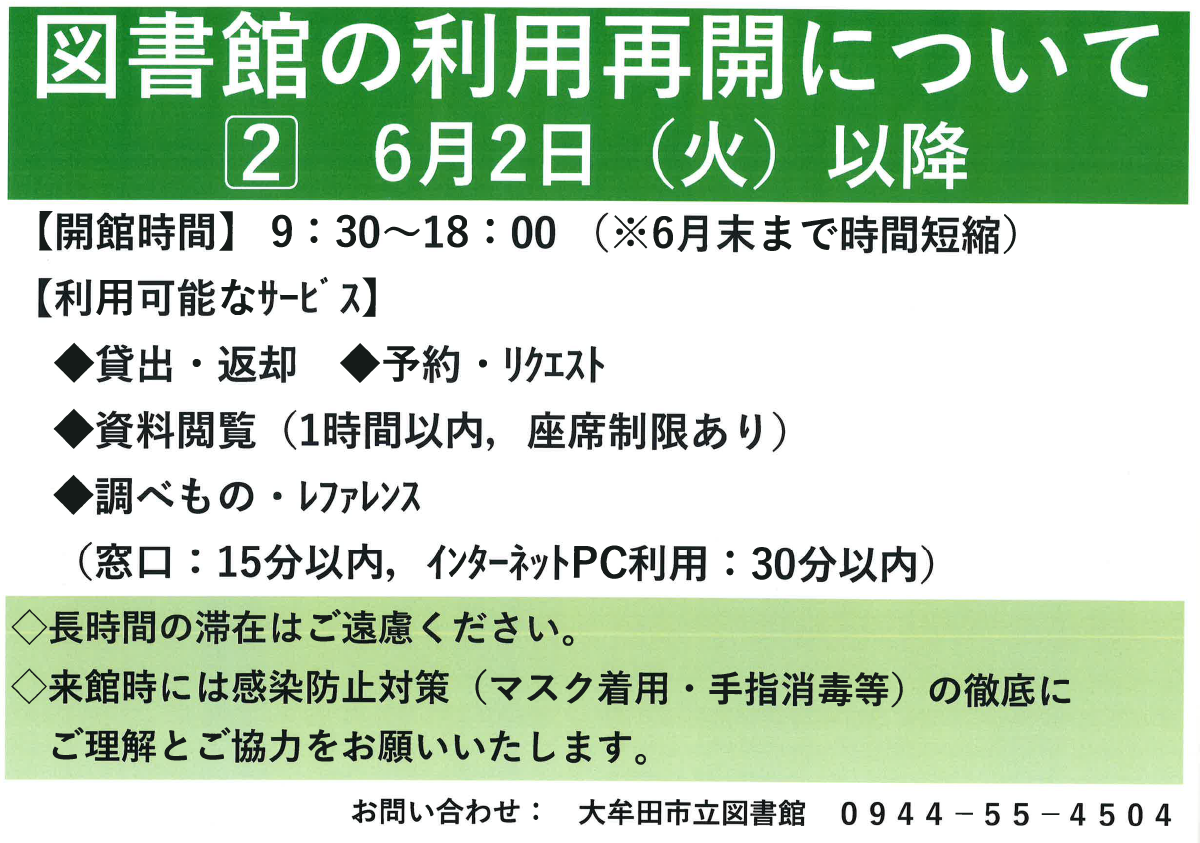 大牟田市立図書館の利用について(6月2日以降)