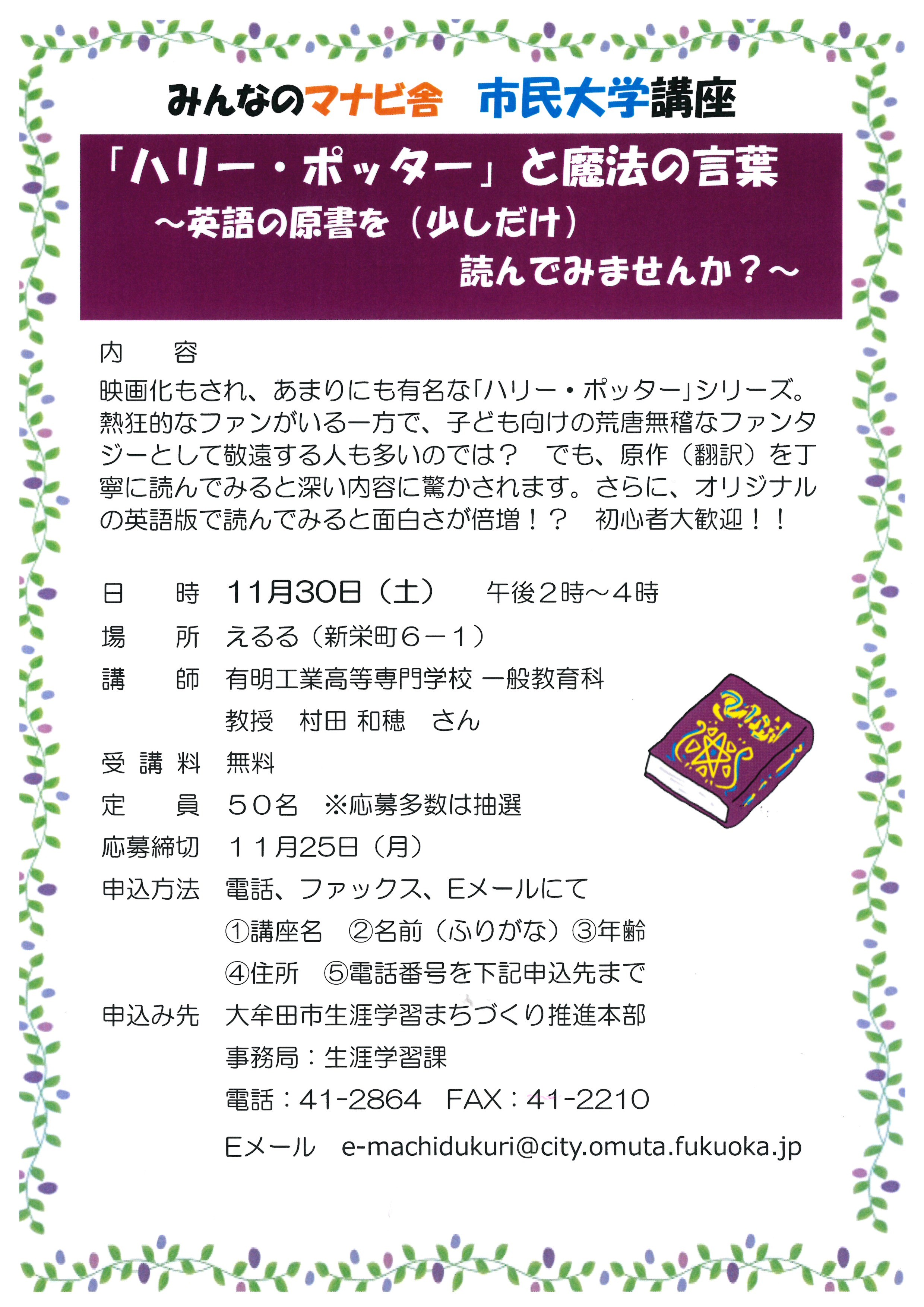 ■申込先 大牟田市生涯学習まちづくり推進本部