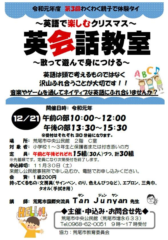 発信者: 荒尾市 生涯学習課 | 生活関連,学習・講座,観光・イベント,その他行政情報,子育て情報