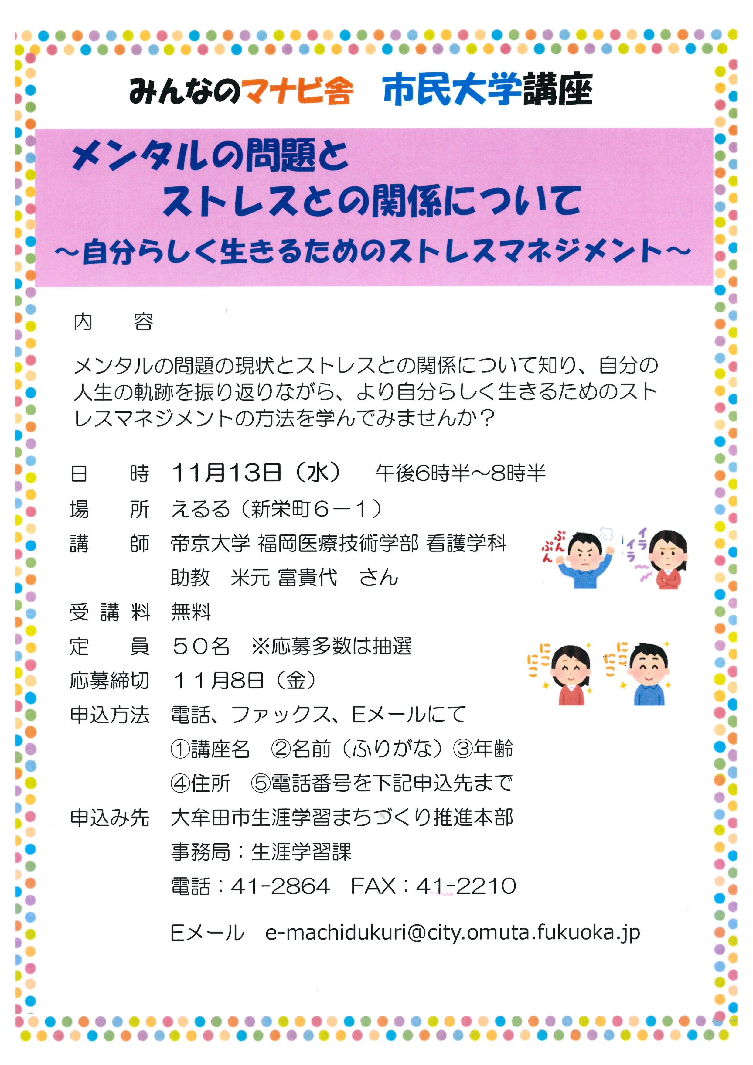 発信者: 大牟田市 生涯学習課 | 福祉関連,生活関連,健康関連,学習・講座,子育て情報