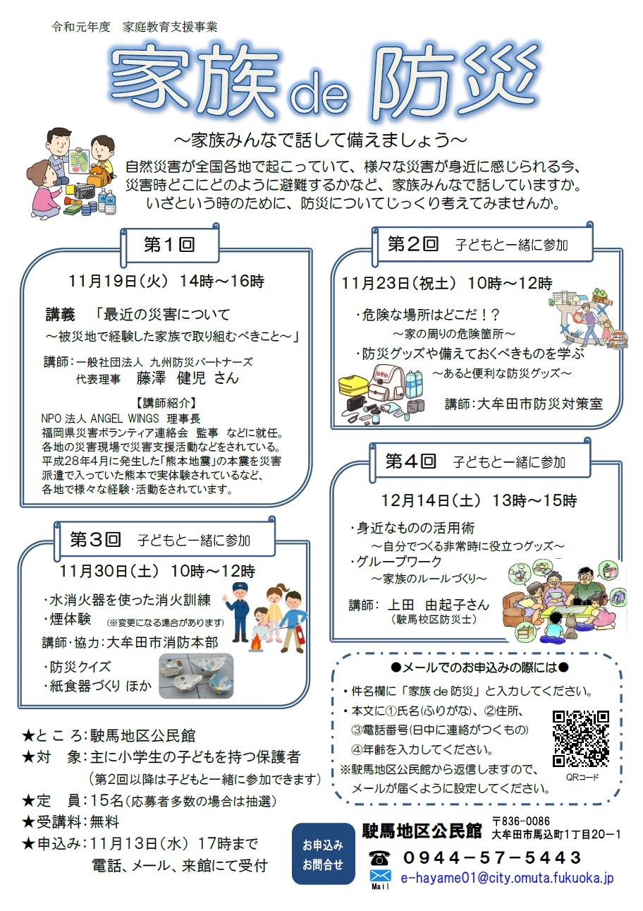 発信者: 大牟田市 生涯学習課 | 防犯,防災,福祉関連,生活関連,健康関連,学習・講座,子育て情報