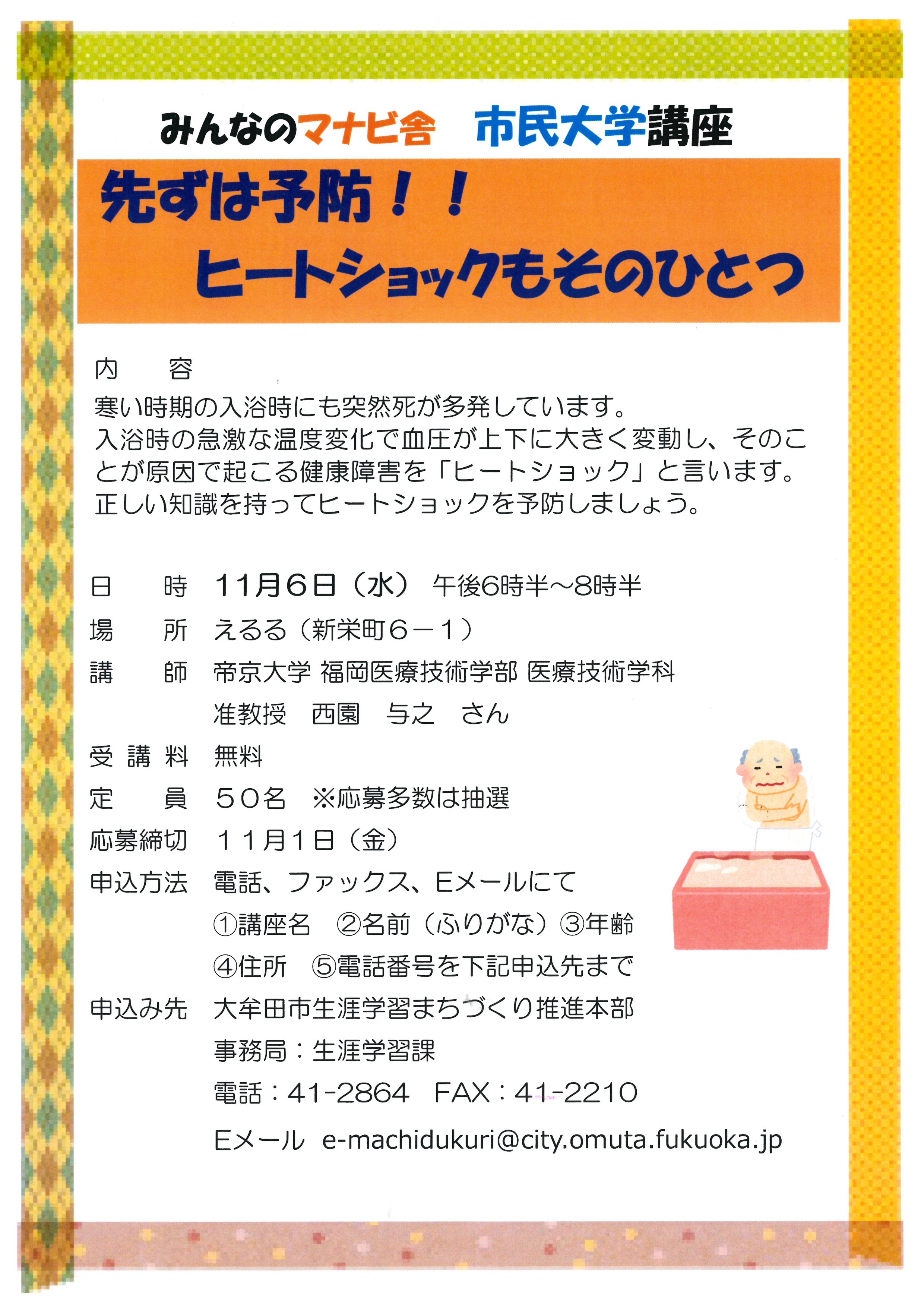 発信者: 大牟田市 生涯学習課 | 福祉関連,生活関連,健康関連,学習・講座,子育て情報