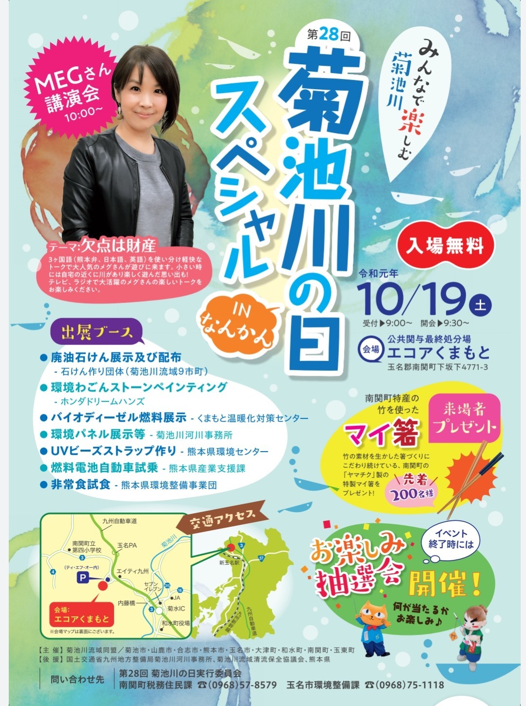 10月19日(土)にエコアくまもと(南関町大字下坂下4771-3)で「菊池川の日スペシャルinなんかん」を開催します。