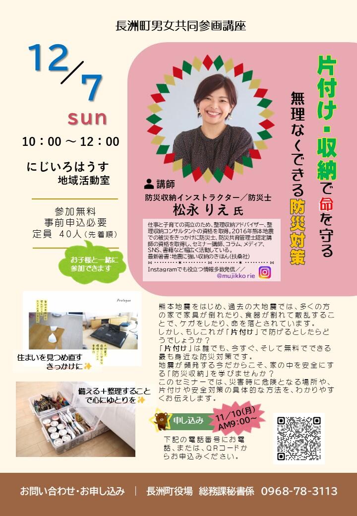 ■講座名 「片付け・収納で命を守る 無理なくできる防災対策」