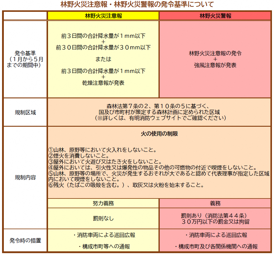 林野火災注意報・林野火災警報の運用開始について