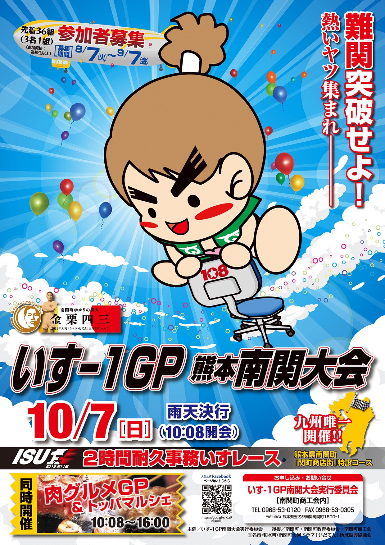 いす‐1GP南関大会実行委員会では、10月7日(日)に開催する『いす‐1GP2018熊本南関大会』の参加チームを募集します。