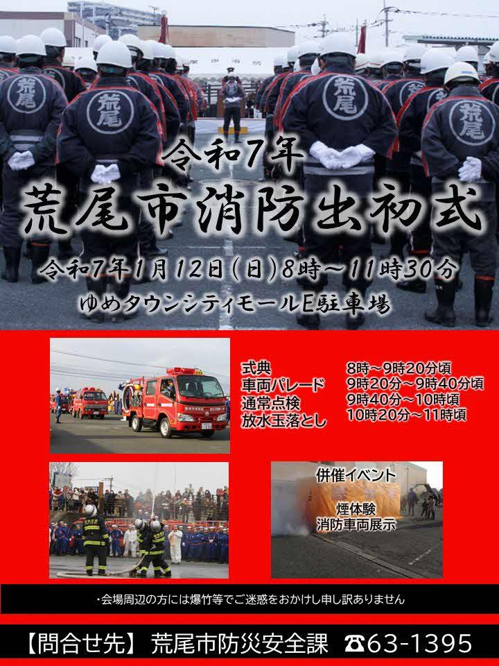 令和7年の年頭にあたり、伝統ある消防精神のもと、更に団結を固め、消防団員の士気高揚を図ることを目的に荒尾市消防出初式を開催いたします。ゆめタウンシティモールを会場として、消防職・団員による、勇壮な分列行進、規律正しい通常点検、空高く水を打ち上げる放水玉落としなどの演目を披露します。