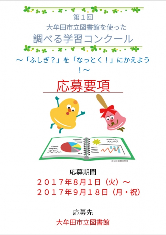 対象:「図書館を使った調べる学習コンクール」に興味のある大牟田市内在住の小学生(要:保護者同伴)