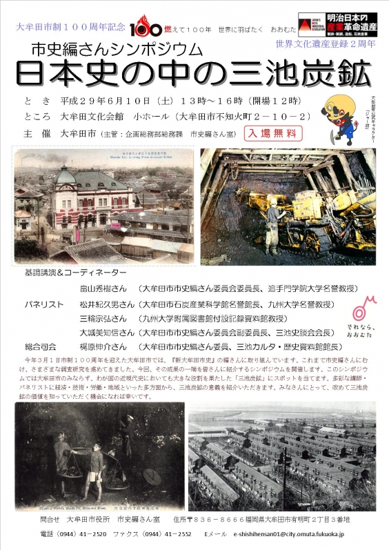 大牟田市制100周年記念 市史編さんシンポジウム「日本史の中の三池炭鉱」