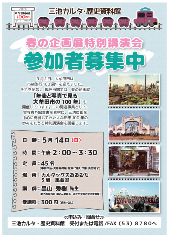 今回、この企画展に関連して、より深く大牟田市の100年の歩みをたどる特別講演会が開催されます。