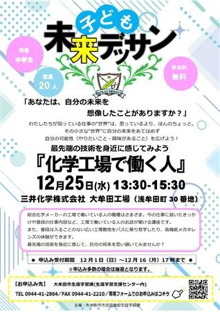 12月16日まで!中学生対象「子ども未来デッサン:化学工場で働く人」