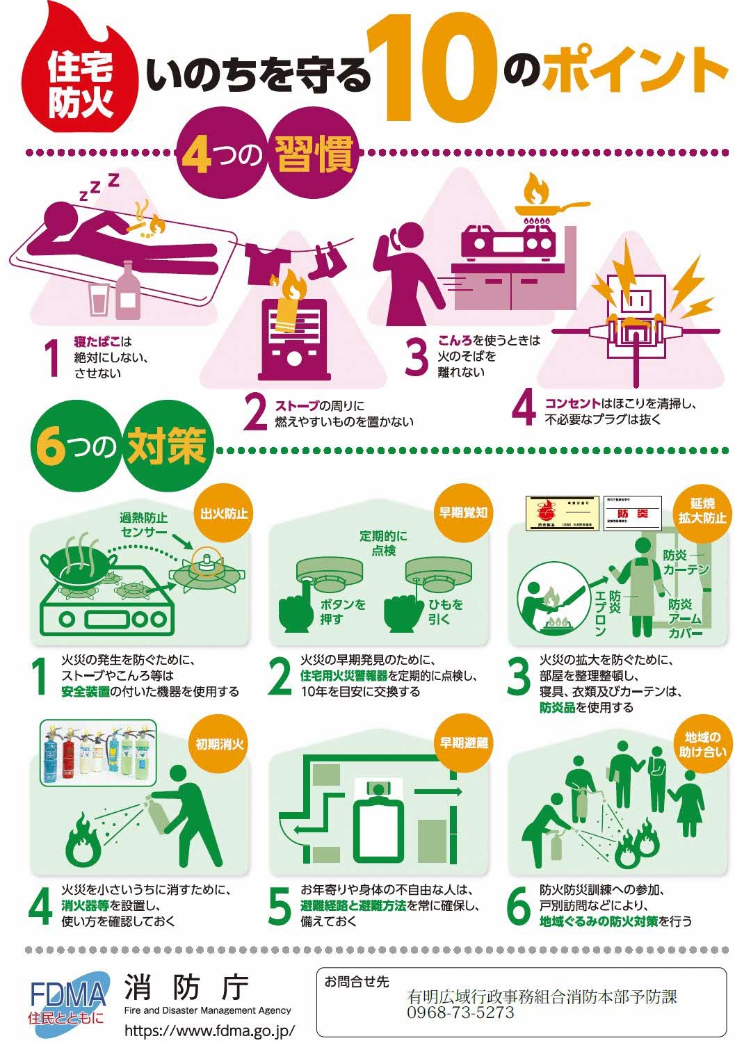 住宅火災の発生を予防するため、「住宅火災いのちを守る10のポイント」にご注意ください。